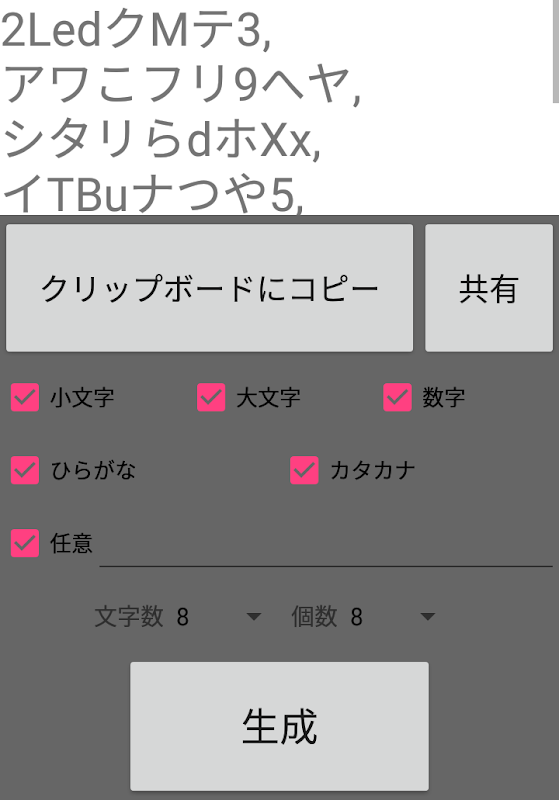 このアプリでは、小文字・大文字・数字の様々な組み合わせで、各ユーザが求めるセキュリティの強度を実現します。もちろん、数字だけや小文字だけなども選択できます。