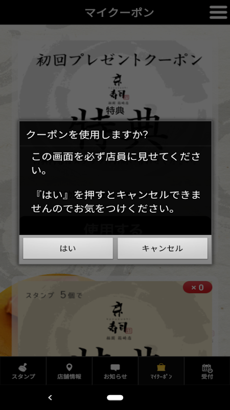 Aplikasi ini adalah aplikasi kad setem yang boleh digunakan di "Kyosushi Hakozaki".