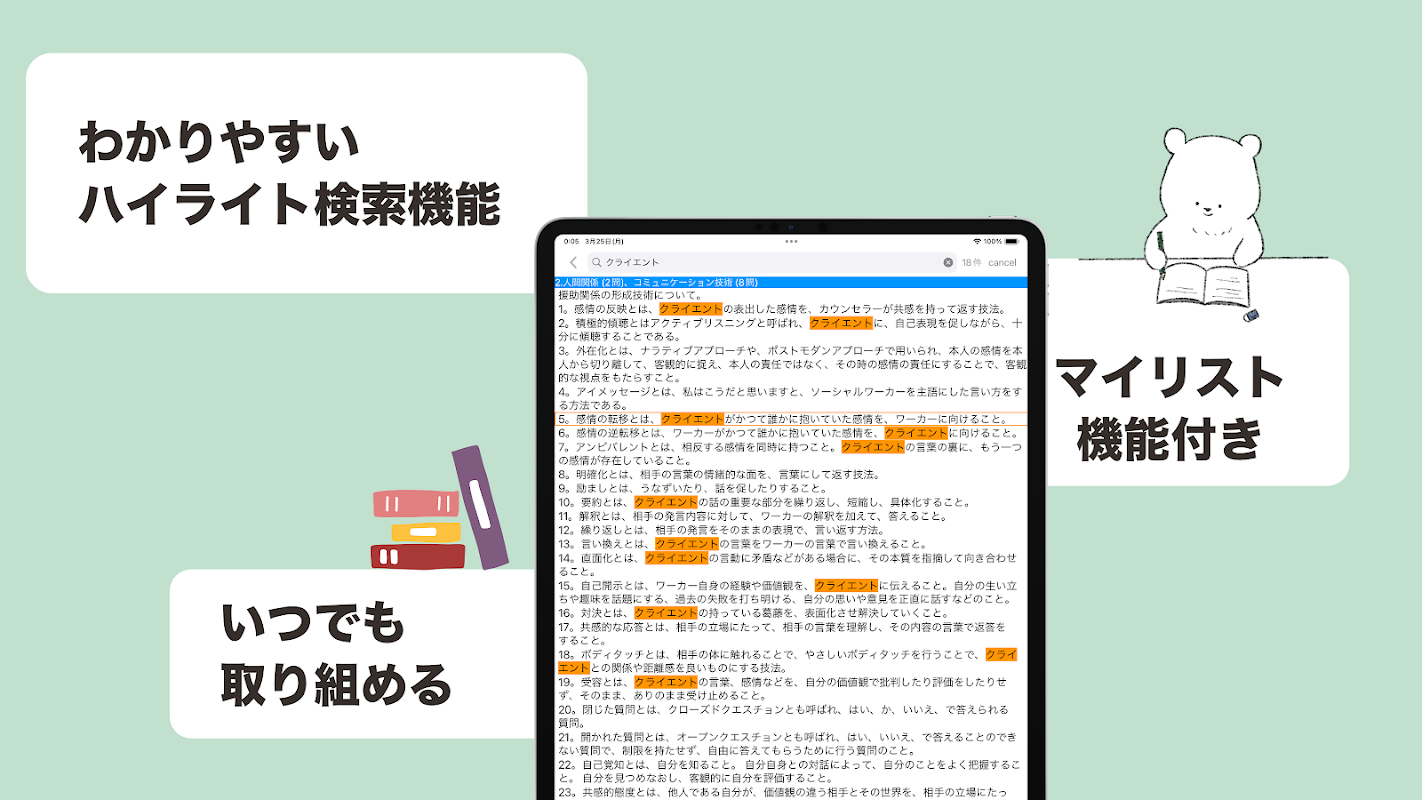 Kami telah menyusun setiap subjek untuk peperiksaan Pekerja Penjagaan Bertauliah ke dalam buku teks selama 15 minit. Kami telah mencipta apl yang memudahkan pembelajaran menggunakan fungsi pertuturan.