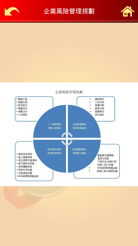 1.合夥事業的風險管理,股東互保計劃.2.人是公司最重要的資產,折損時如何補償.3.如何將固定資產轉換成靈活的長期投資.4.企業風險管理並不難,只是不做.