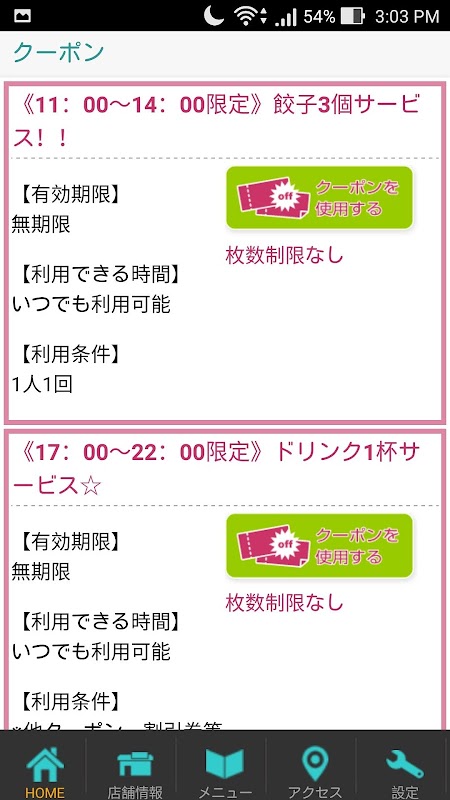 ●発行している、クーポンをアプリから利用する事ができます。