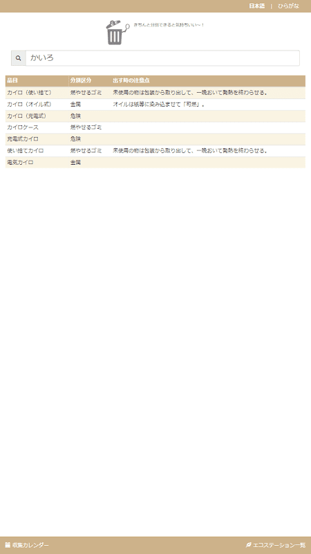 sampah ini, apa sampah? Carian mudah pada input yang satu. Ia adalah sebuah aplikasi di mana anda boleh mencari sorting pembaziran Tsu, Mie Prefecture.