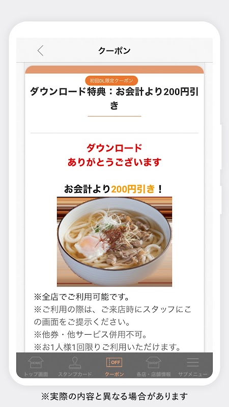 [Hakata Yari Udon] Aplikasi rasmi! Urus kupon dan kad setem dengan telefon pintar anda! Pemberitahuan dari kedai juga akan dihantar terus ke telefon pintar anda.