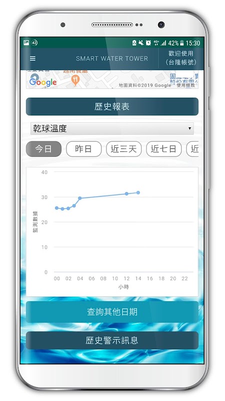 Melalui APP ini, anda boleh log masuk ke Tailong Smart Cooling Tower System. Pengguna dapat melihat data kualiti air jarak jauh melalui sistem ini dan memantau status data kualiti air.