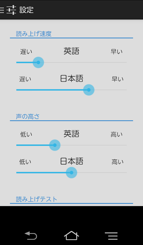 ※「Googleテキスト読み上げ」のエンジンを高品質にすると、音声がネイティブの発音により近くなります。