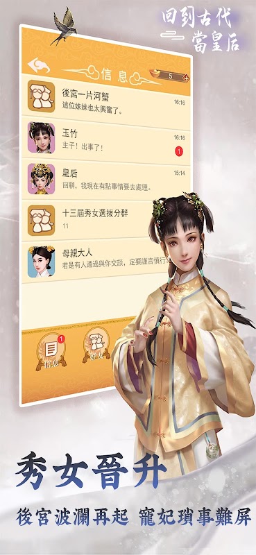 Ini ialah permainan mudah alih pengembaraan teks berorientasikan wanita yang ditetapkan di istana purba. Pada permulaan permainan, anda akan memasuki istana sebagai gadis pertunjukan dan mencetuskan pelbagai plot melalui perbualan dengan watak yang berbeza. Matlamat anda adalah untuk menghapuskan gundik berbisa di istana, dengan berani mengusik maharaja, meneroka rahsia gundik, dan berinteraksi dengan pelbagai watak. Selepas banyak cabaran dan pertempuran kebijaksanaan, dia akhirnya naik ke takhta tuan harem. Permainan ini bukan sahaja menunjukkan pertikaian dan tipu daya kehidupan istana, tetapi juga membolehkan anda mengalami pesona mengasyikkan istana purba.
