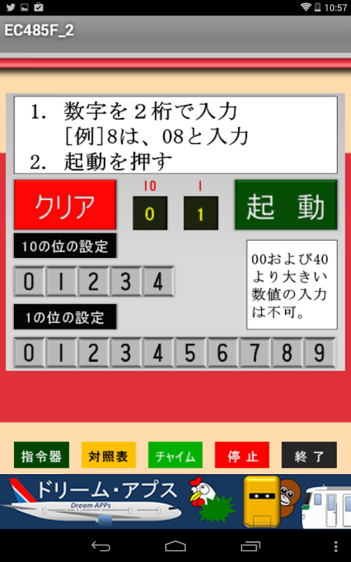 駅名対照表で列車種別と行先を確認して、それに対応する番号を指令器に入力します。