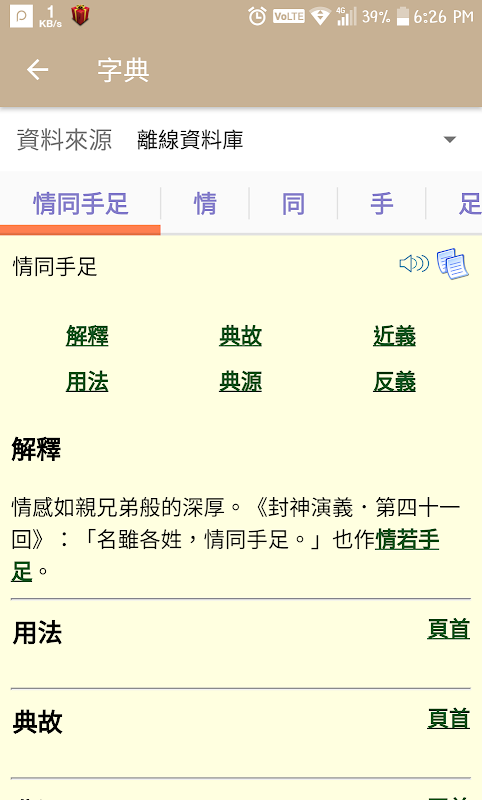 ✔ 找同音詞語或成語:「枝竹」或「知足」可以找到「知足常樂」, 找到的字詞會再細分成「同音同字」或「同音異字」