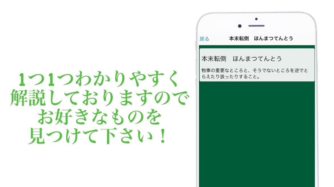 このアプリでは人気が高い四字熟語をまとめたアプリとなっております。