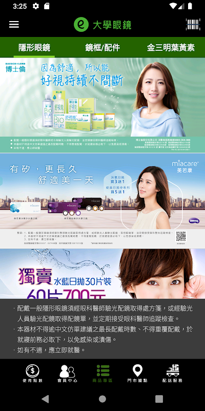 大學眼鏡貼心的提供大學會員專屬的 APP 服務,除了介紹門市、最新訊息、優惠活動、並提供商品配送服務,再結合多項點數機制,提供會員更超值的享受與服務。