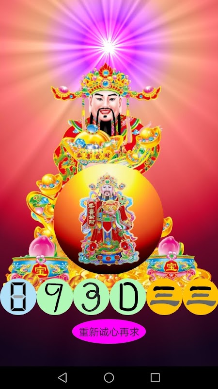 大马财神爷幸运神字,含有多款式幸运号码、图像、音效和显示法,还有中文数字号码显示。只需诚心诚意先掷筊,然后点选想要的号码:1D(单字)、2D(双字)、3D(千字)、4D(万字)、5D(十万字)、6D(百万字),就会显示财神爷幸运号码或神字。