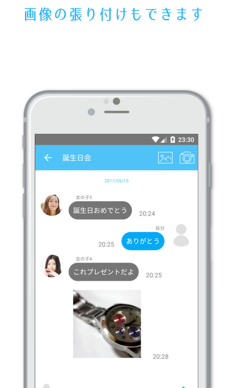 ※アイコンや画像添付で使用した画像は「girls talk」フォルダにコピーされます。