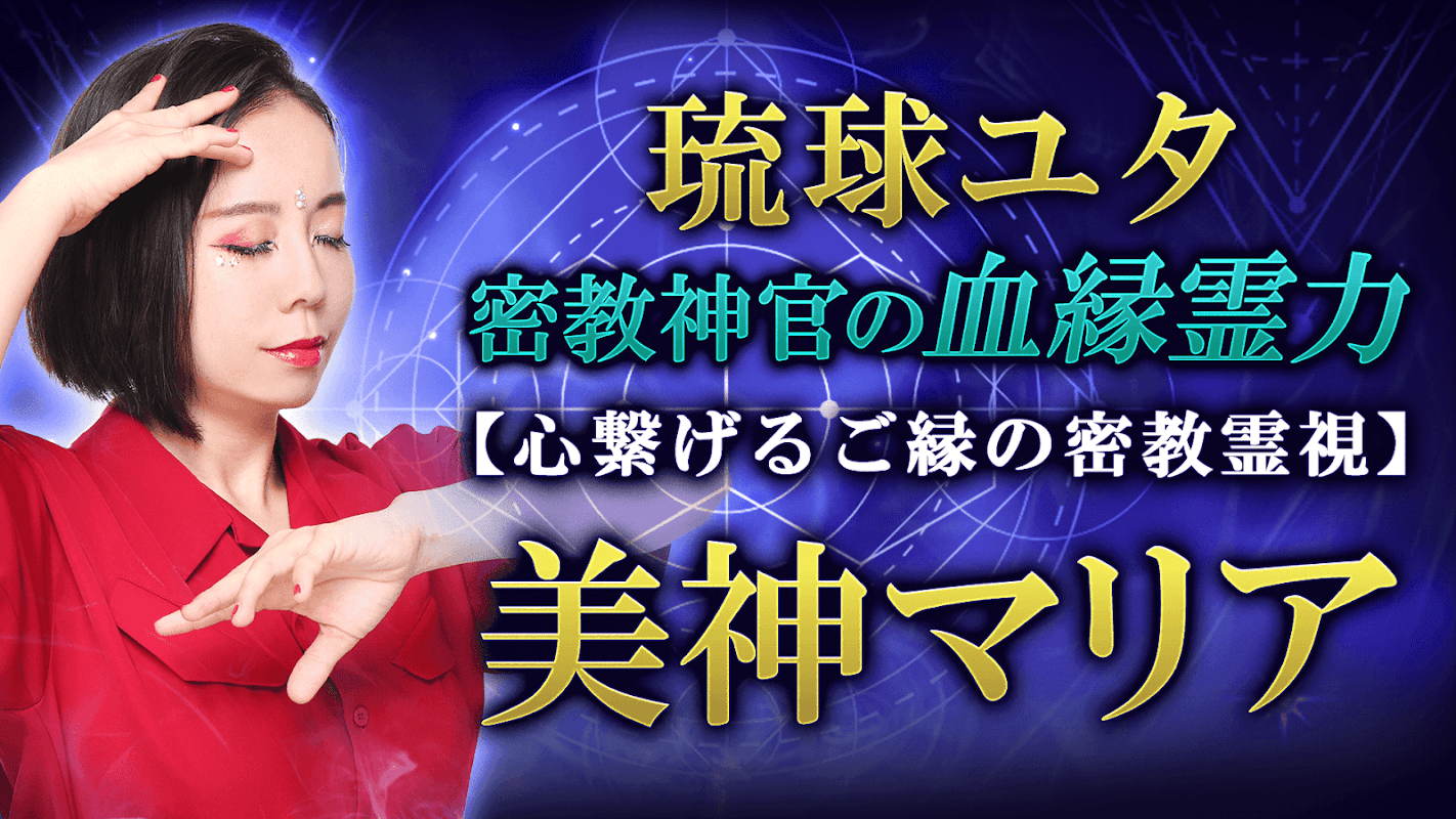 Ryukyu Utah/Mikami Maria mempunyai kuasa rohani yang kuat sebagai imam Buddha yang esoterik. Sila nikmati penglihatan rohani esoterik yang menghubungkan hati anda dan membimbing hubungan anda dengan kuasa rohani pertalian darah.
