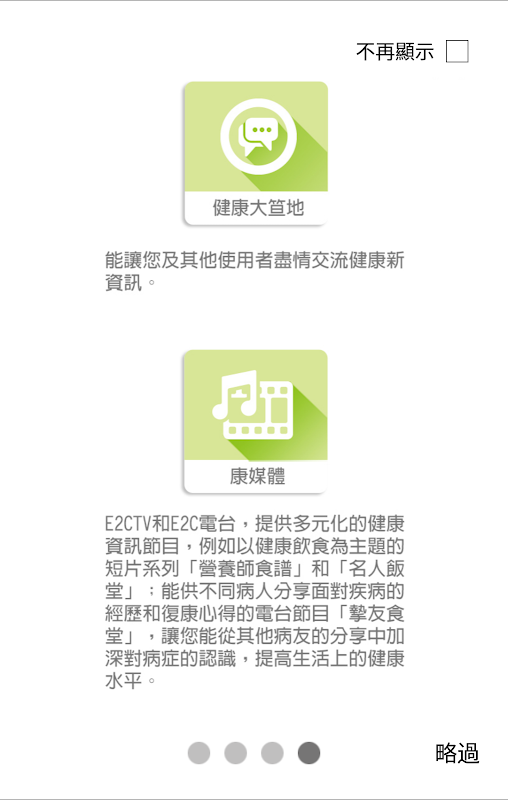 康媒體—e2CTV和e2C電台,提供多元化的健康資訊節目,例如以健康飲食為主題的短片系列「營養師食譜」和「名人飯堂」;能供不同病人分享面對疾病的經歷和復康心得的電台節目「摯友食堂」,讓您能從其他病友的分享中加深對病症的認識,提高生活上的健康水平。