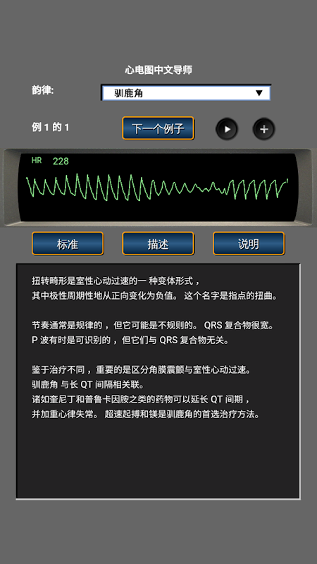 Apabila gelombang merentasi skrin, belajar untuk menjelaskan irama ECG. Ini adalah versi Cina ECG Rhythm Tutor.