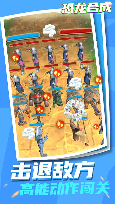 Ayuh, biarkan dinosaur dan pahlawan anda mengalahkan musuh dalam kedudukan yang betul melalui sintesis yang munasabah!