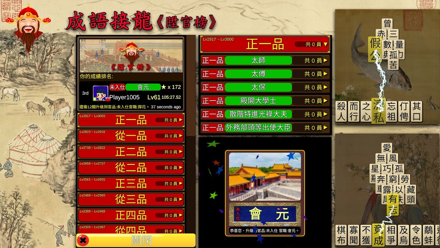 Silakan datang dan terima cabaran [Senarai Promosi Idioms Solitaire]. Selain meningkatkan pengetahuan anda tentang idiom, cuba lihat peringkat dinasti Qing mana yang paling berkemampuan dengan pengetahuan anda?