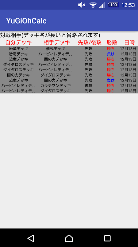 デッキ全体や、デッキ別に記録できたり、勝率等がすぐわかるようにしました。