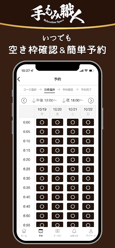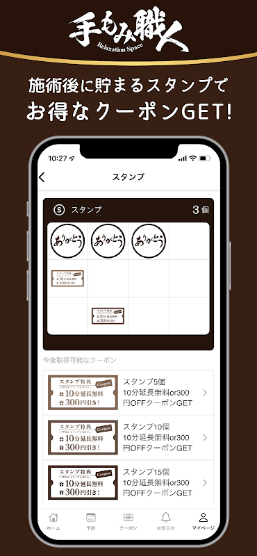Melalui aplikasi, anda boleh menerima maklumat dan tawaran terkini mengenai alat urut tangan. Anda juga boleh menyemak menu, slot masa yang anda inginkan, dan membuat tempahan daripada telefon pintar anda pada bila-bila masa. Dengan memasang aplikasi, anda boleh menggunakan tukang urut tangan dengan lebih mudah dan lebih dekat.