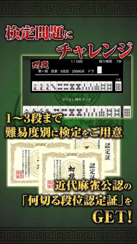 【何切るを解いて検定にチャレンジ!】 近代麻雀が監修した何切る問題に手軽に挑戦できるアプリです。 数百問の何切る問題にチャレンジにして麻雀力を鍛えよう!