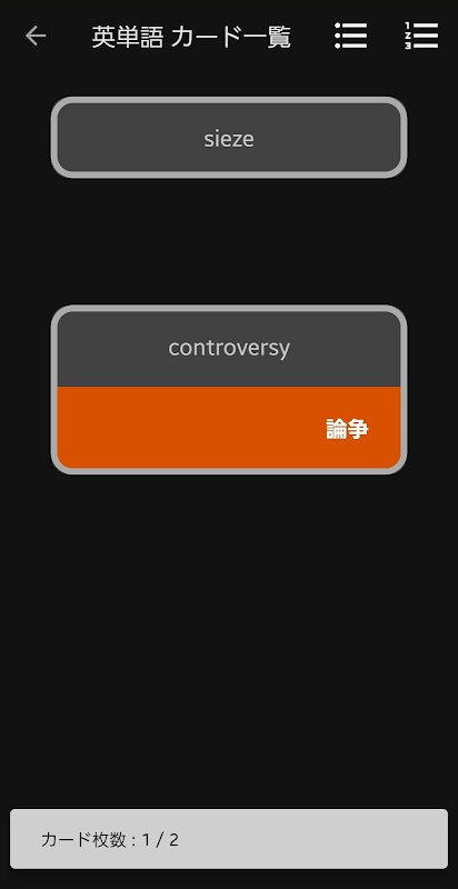 この機能は、カメラで暗記したい文字を映して登録すると、カードをめくって見たり、書き取りをすることができます。
