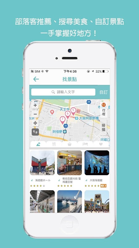 【搜尋景點】附近搜尋、分類搜尋、關鍵字搜尋、地址搜尋、文章搜尋、網頁搜尋。