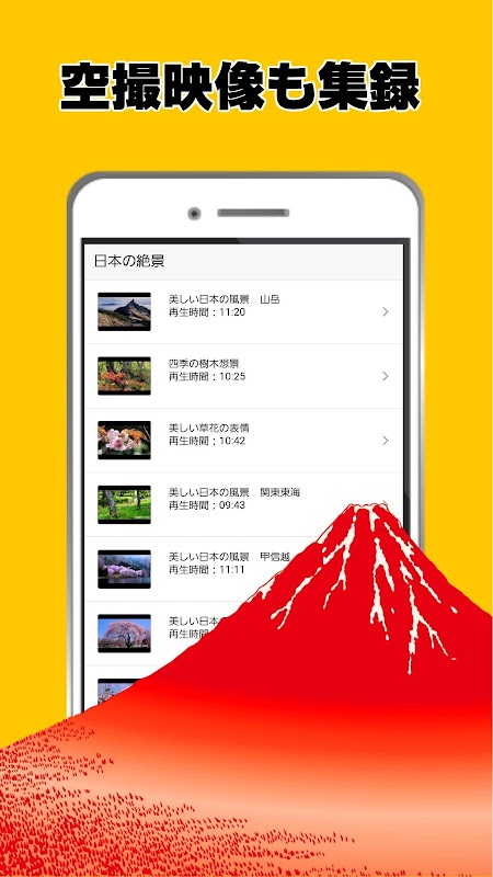 【無料】日本の美しい自然(海・山・川・滝等)を厳選して集めた映像アプリです。また歴史的建造物や京都の神社お寺名所も集録。ドローンを使った空撮もあり楽しめます。