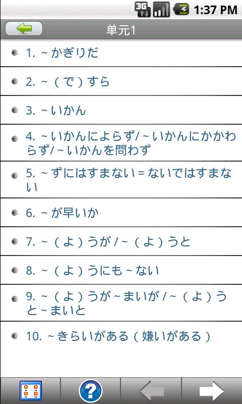 每10条语法作为一个单元,分阶段攻克一级语法。