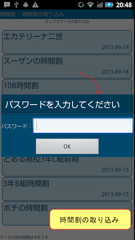 Apabila anda mendaftarkan pelbagai nama jadual, butang tukar jadual akan dipaparkan di bahagian atas skrin teratas, jadi sila pilih nama jadual waktu selepas memilih nama tambah.