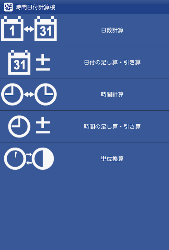 時間日付計算機-時間と日数の計算・単位換算のできる電卓アプリ 2.0