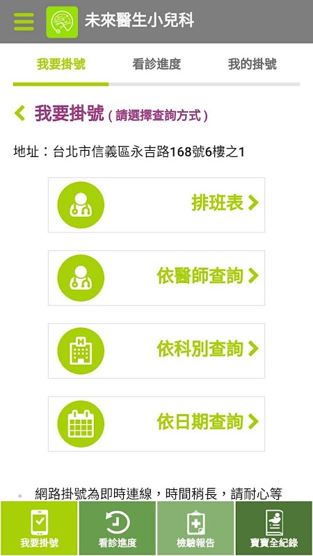 2.即時查詢看診進度 ,不需重覆詢問櫃檯人員號碼的進度 。