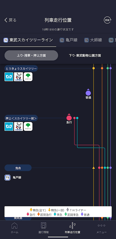 Kami akan memberitahu anda melalui pemberitahuan tolak apabila kelewatan atau penggantungan operasi berlaku pada setiap talian Tobu.