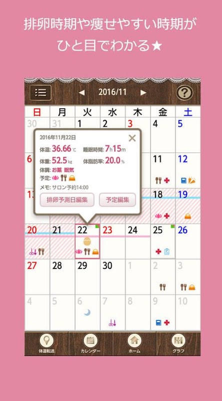 楽天キレイドナビ:基礎体温グラフ,排卵日予測,生理管理