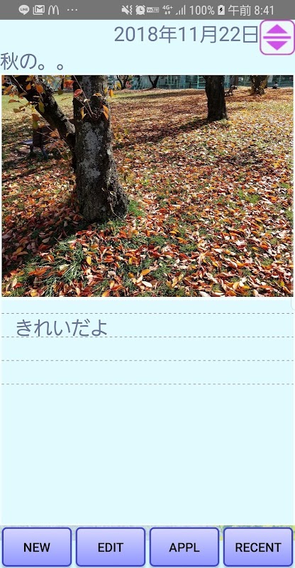※ 写真は日記と一緒に表示されますが、アプリ内には保存されませんのでご注意ください。