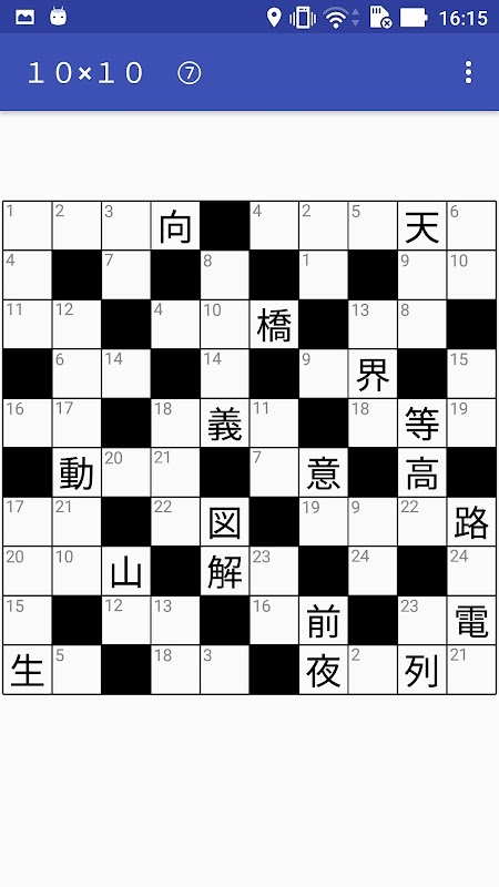 骨太の脳トレ、漢字のナンクロです。初級・中級・上級モードが選べますが上級モードは非常に難しいです。ぜひ上級モードの全問クリアに挑戦してみて下さい
