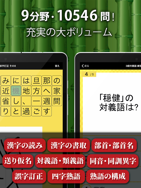 内容充実・漢字辞典連携機能も付いた本格派人気アプリ「漢検トレーニング」をぜひご活用ください!