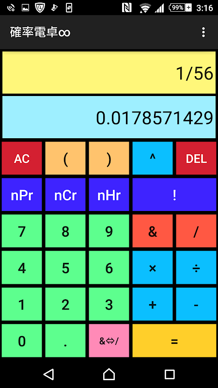 Jumlah kasus (permutasi, kombinasi) dan probabilitas dapat dengan mudah dihitung. Hasil perhitungan probabilitas ini tentu saja ditampilkan di menit.