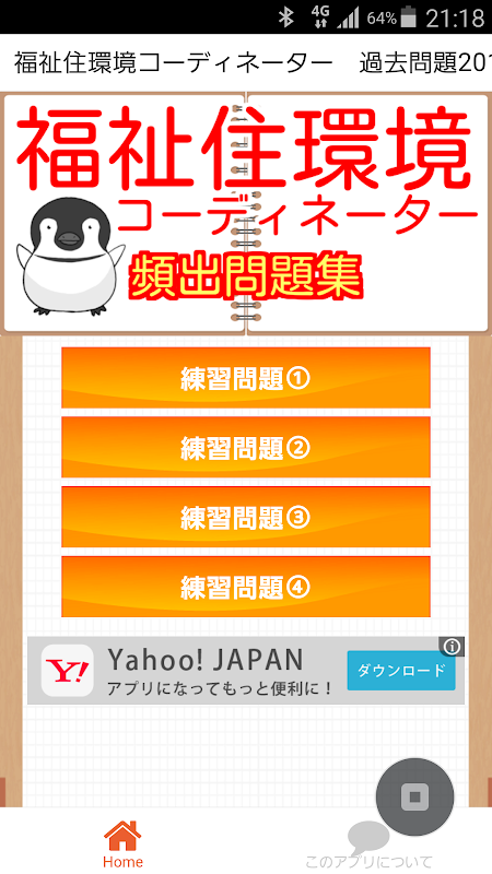 介護施設やグループホーム、さらには医療系の施設から病院まで今注目の高齢社会に欠かせない住まいのアドバイザー「福祉住環境コーディネーター」を題材とした非公式の無料学習アプリです。このアプリでは「福祉住環境コーディネーター2級」と「福祉住環境コーディネーター3級」を平行して学べるようになってます。