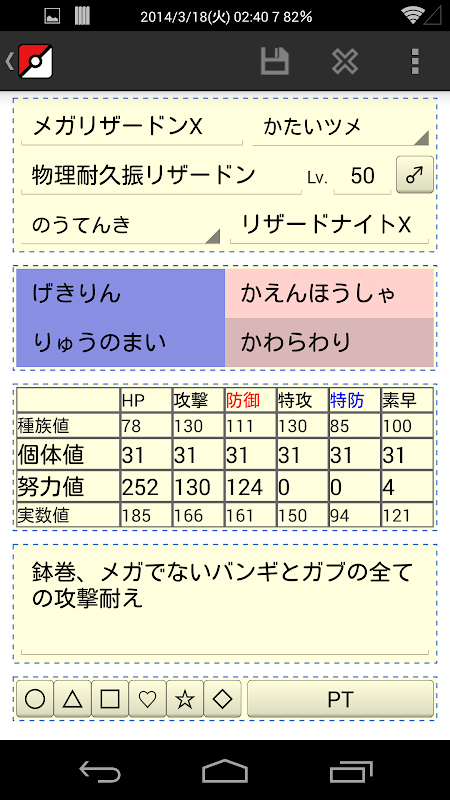 努力値振りなどを忘れてしまわないようにメモしておけます。