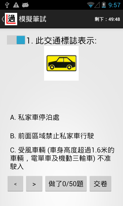 模擬練習原設有20題題目,跟官方考試一樣,亦可選擇50題或100題作密集式練習