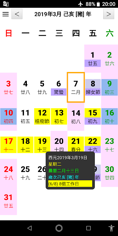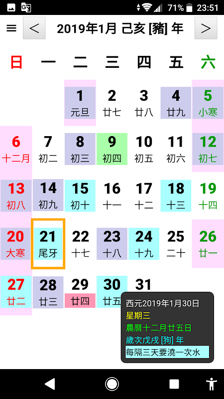 Bagi pengguna Taiwan, ini adalah kalendar kekal yang mudah yang boleh menyemak tarikh lunar dan disepadukan dengan Kalendar Google Ia mempunyai tetapan peringatan tarikh yang sangat fleksibel tanpa grafik yang terlalu mewah.