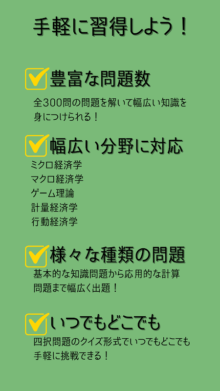 Maklumat APK 経済学クイズ ミクロ・マクロ・ゲーム理論の試験対策問題集