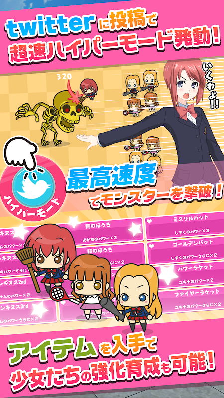 女子力を駆使して放置、育成ゲームでストライクショット!秘密の花園…女子学園でモンスターをハンティングせよ!App Store無料アプリ1位獲得!超オススメ