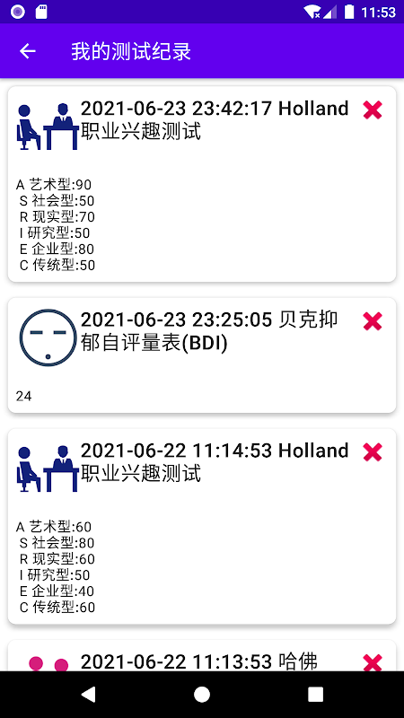 1. Pilih jenis skala minat pekerjaan, PDP, DISC, MBTI, pilihan otak kiri dan kanan, kecerdasan standard, jangka hayat, kepuasan emosi standard (EQ), skala penilaian diri gejala (SCL-90), gaya pembelajaran, kegelisahan Skala penilaian kendiri (SAS), ujian diri untuk gangguan obsesif-kompulsif, fobia sosial.