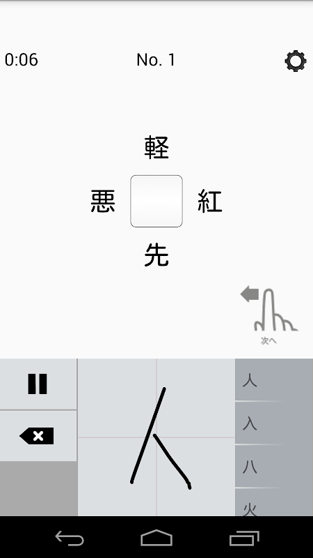 分からない問題はスワイプ(右->左)することによってスキップ可能です。また逆のスワイプ(左->右)で以前の問題にも戻ることができます。