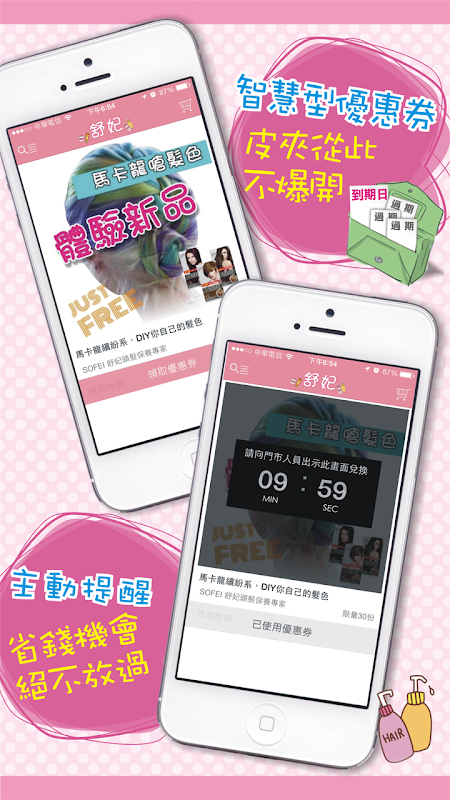 皮夾裡是不是一堆又一堆放到過期沒兌換的優惠卷,不僅佔空間又容易忘記?!舒妃APP提供更聰明、更貼心的提醒系統,自動通知你優惠卷期限,還主動幫你找店家推出的獨家活動,讓你好康活動絕不錯過!