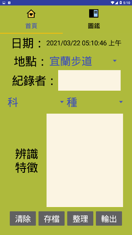 1. Tetapkan tapak pemerhatian mengikut Jejak Yilan di Taiwan, dan rekodkan ciri-ciri pengenalan paku pakis yang berbeza dalam perkataan. Gunakan fail CSV sebagai pangkalan data luar talian untuk mengelakkan situasi di mana tiada rangkaian di alam liar. Ia juga mungkin untuk mengeksport fail dan mengeditnya dengan hamparan komputer.