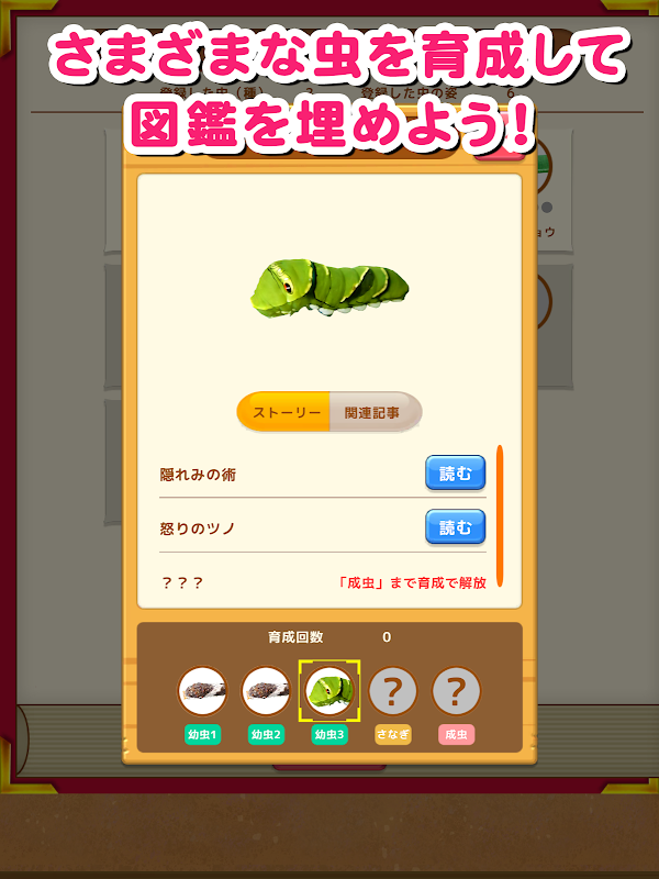 Permainan di mana anda boleh mengalami latihan serangga yang realistik! Tumbuh larva ulat comel!