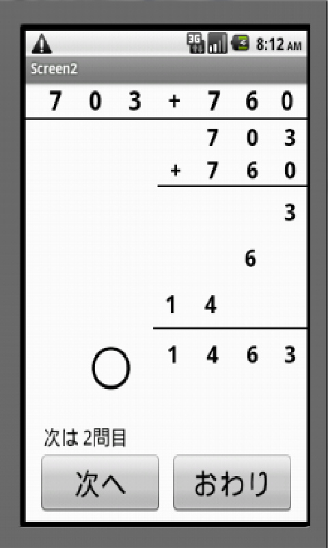 ・問題を1桁計算に分解し、計算する数字が背景色で