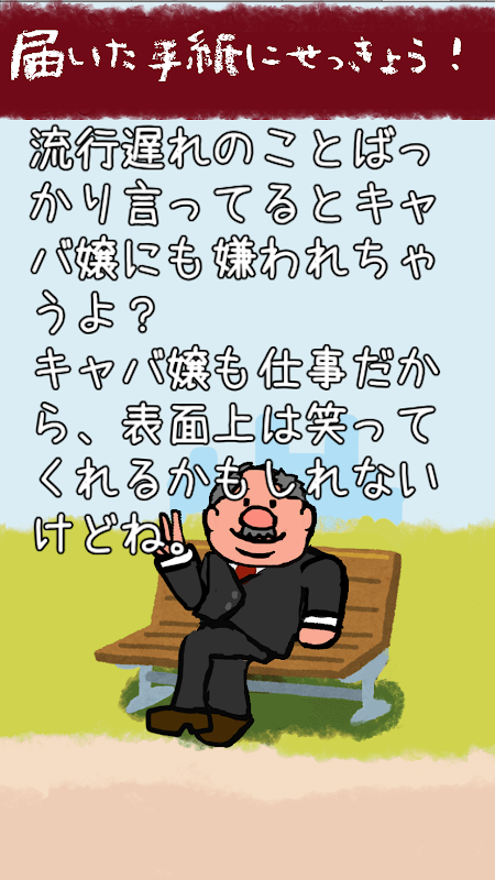 まず最初にいっておくと、このアプリは大喜利アプリなんだ。おもしろいお手紙をおくるとオジサンがおもしろい返事を返すっていうわけ。キモいのとか笑えるのとか、おもしろいのとか・・・、まぁなんでもありだよ!公序良俗に反しない限りね。